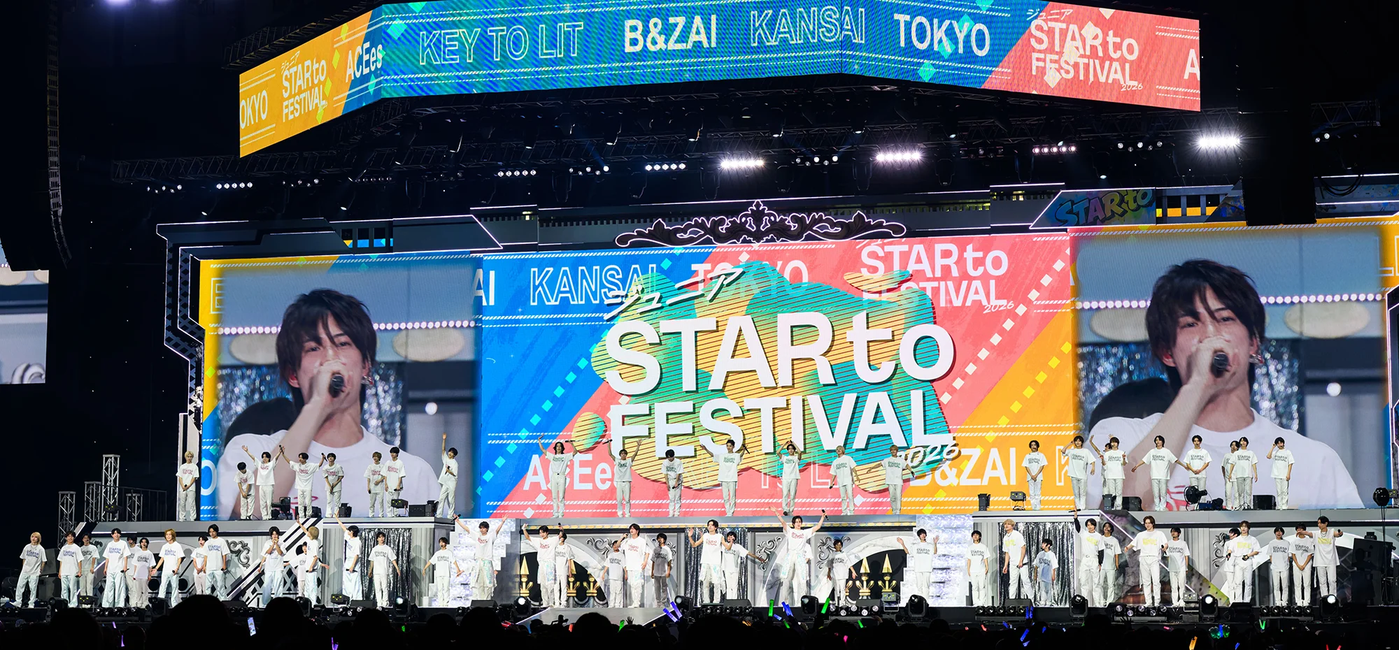STARTO ENTERTAINMENT所属の東西ジュニア77人が一同に会してフェスティバルを開催! ACEes、KEY TO LIT、B&ZAIをはじめとしたジュニアたちが、それぞれの個性を爆発させた。さらに、ここでしか見られないグループの垣根を超えたコラボや先輩たちの名曲を全員でパフォーマンスするコーナーもあり、事務所ならではの絆を感じるシーンも盛りだくさん! 華やかで楽しく、見応えあるフェスになっていた。